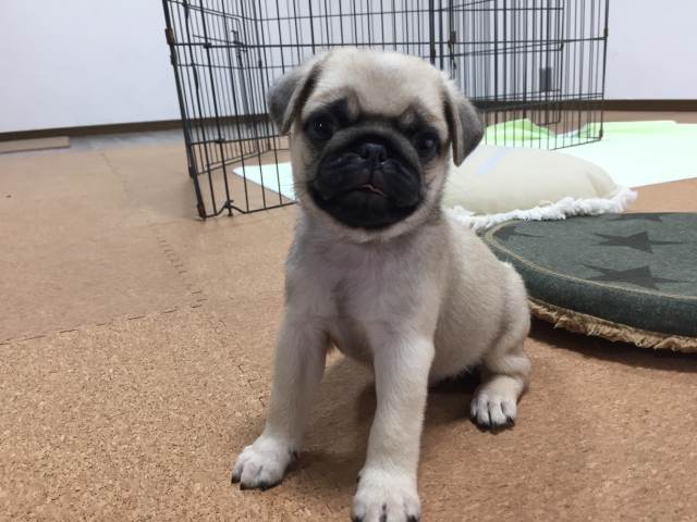 この度はとても可愛いパグちゃんを譲っていただきありがとうございました。最初の連絡もとても早く安心できました。引き渡しまでに何度か見せていただき、成長が見れて良かったです。初めてで不安でいっぱいで、またご相談させていただくと思いますが、その時はよろしくお願いします。(奈良県 女性)