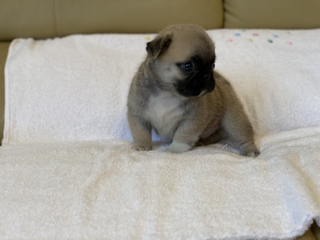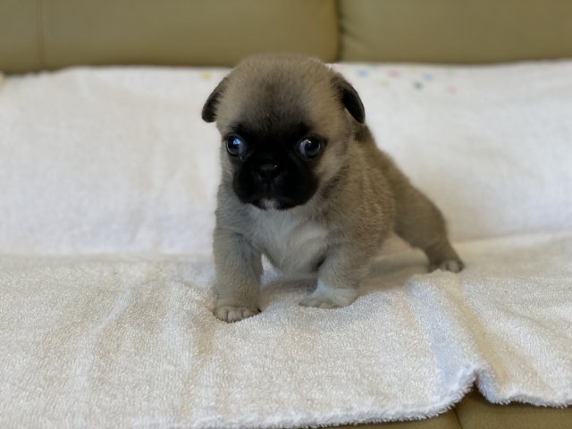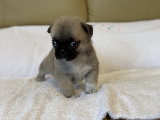 | コメント | パグとペキニーズのミックス犬です。 おっとりとしたペキニーズの性格でとっても可愛いく育っています。 写真では伝わりにくいですがパグとペキニーズのいいとこ取りの男の子です。 メチャメチャ可愛いです。 ご見学お待ちしています。 北関東自動車道の宇都宮上三川インターより小山方面に向かい7〜8分のわかりやすい場所です。 |