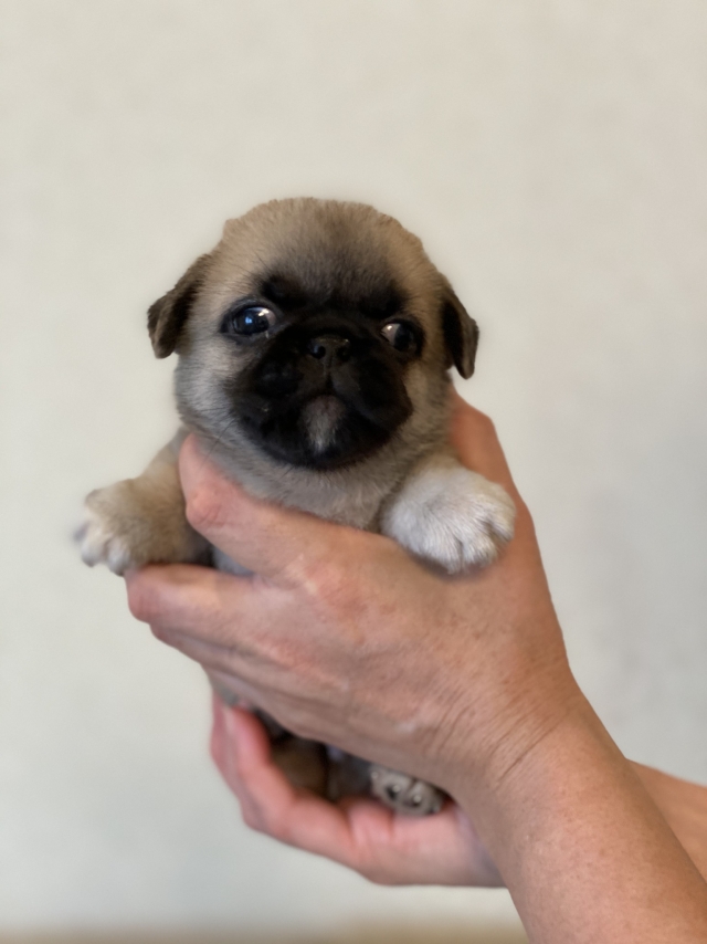 パグの飼育歴は30年以上になります。今年親の代から買っていた 黒パグを亡くしてから家を埋め尽くしているパググッズを見るたびに いつか新しい仔を迎えたいと思うようになりました。 北関東でブリーダーさんを探しているうちに木村様を知り、見学、購入の運びとなりました。 このたび性格も大変おおらかな素晴らしい仔犬をお譲りいただき大変感謝しております。 (茨城県 男性)