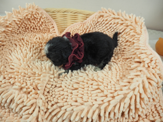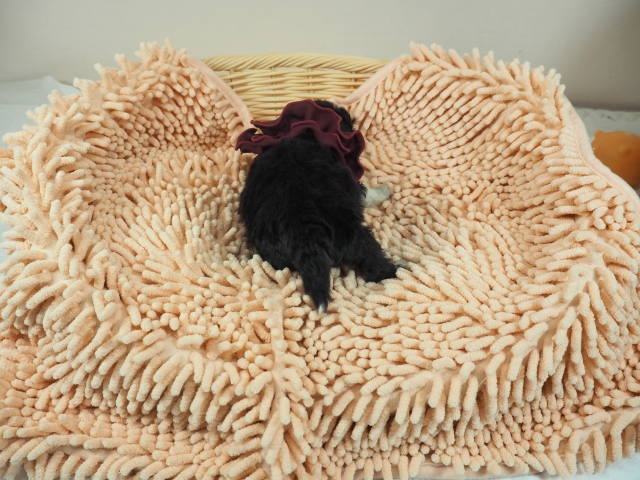 この度はとっても元気な子をありがとうございました。 見学の際は駅まで迎えにきていただき、説明もとても丁寧で安心しました。 空輸で送っていただき、ありがとうございました。 迎えてから一週間が経ち、家にも慣れて、へそ天で寝ています。 トイレトレーニングも、来た時から8割できていて、今ではほとんど失敗しなくなりました。 可愛く元気で、毎日元気に飛び跳ねています。(奈良県 女性)