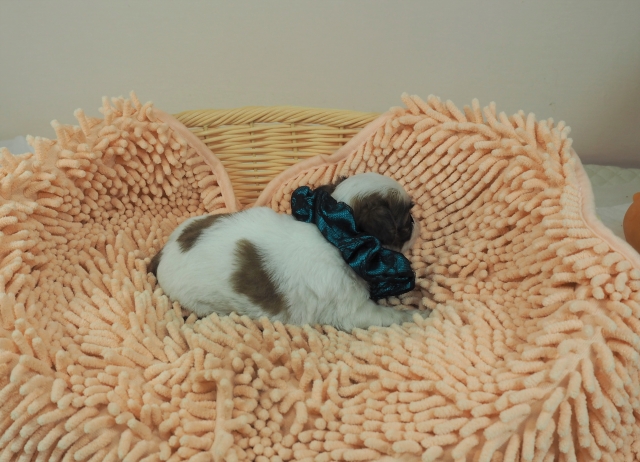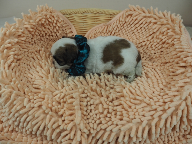この度はとっても元気な子をありがとうございました。 見学の際は駅まで迎えにきていただき、説明もとても丁寧で安心しました。 空輸で送っていただき、ありがとうございました。 迎えてから一週間が経ち、家にも慣れて、へそ天で寝ています。 トイレトレーニングも、来た時から8割できていて、今ではほとんど失敗しなくなりました。 可愛く元気で、毎日元気に飛び跳ねています。(奈良県 女性)