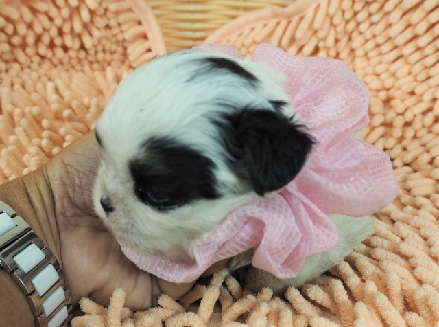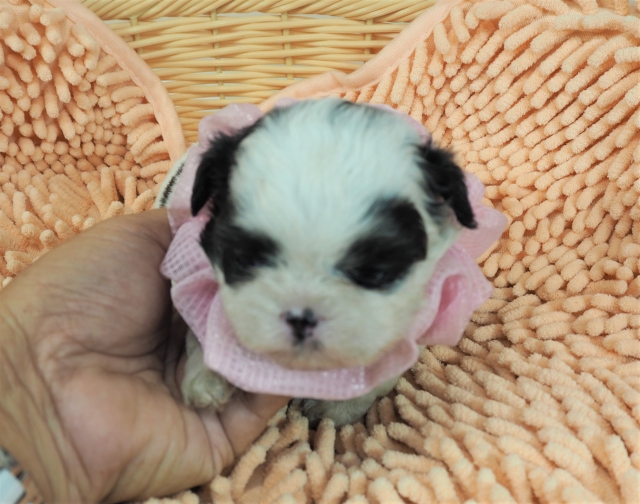 | コメント | お父さんはチワワのミッキー君、お母さんとっても可愛いシーズーのジュリーちゃんから生まれたとってもキュートな女の子です(桃リボン)。 とっても可愛いですよ。 8月22日まで残暑セールのため値下げしました。 |