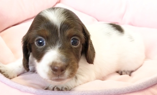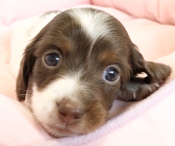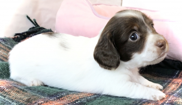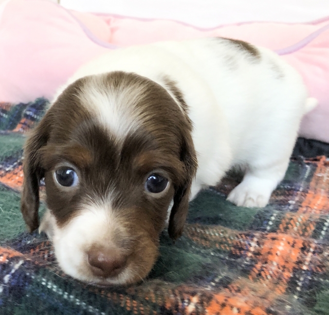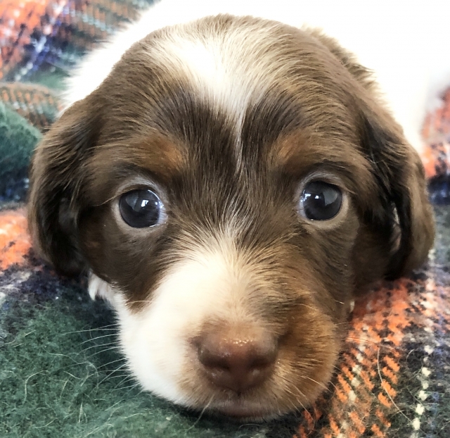 ミニチュア・ダックスフンド(ロング) チョコレートタン パイボールド ♂(男の子) 神奈川県【 ブリーダーズ 】