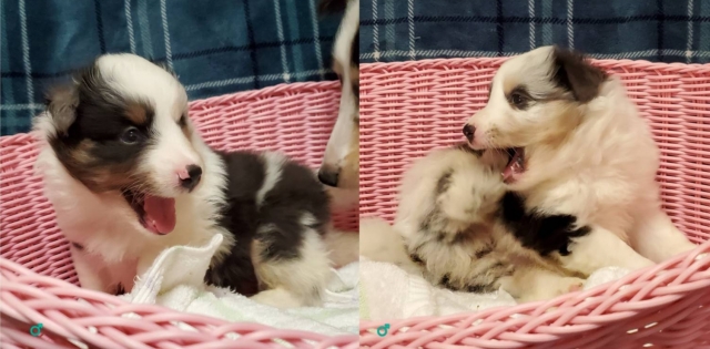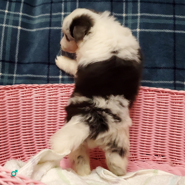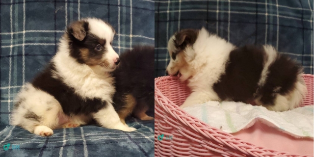| コメント | 両親ともに優良血統の男の子です。 父犬: JCCグランドチャンピオン 母犬: JKCチャンピオンプJCC-グランドチャンピオン 首回り白多く、派手です。 目色は、左マール(黒に少しブルーあり)、右目ブルーです。 繁殖不可、室内飼育希望です。 ご家族の一員として、生涯、可愛がって下さる方を希望します。 お問い合わせ、お待ちしております。 |
