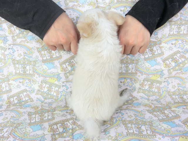 | コメント | 現在コロナウィルスの感染拡大が拡大中の為、新しい生活様式に基づいての対応となります。様々な制約がございますが、ご理解、ご協力をお願い申し上げます。 ★☆-ーーーーーーーーーーーーーーーー☆★ スタッフはマスク着用、随時手指の消毒を行います。 公共交通機関のご利用はお控えください。 自家用車でお越しのお客様も、お越しの方全員のマスクの着用を お願い申し上げております。 体調が悪い方、体温が37.5℃以上の方、海外渡航歴がこの2か月以内にある方は、 ご来舎をご遠慮していただいております。 店内へは最大3名様までのご入店とさせていただいております。 もし3名様以上の場合は2組に分けてのご入店となります。 ご来舎時には手洗いとアルコール塗布をお願いしております。 店内ではほかのお客様と同席にならないように、見学を間引きして 同時間帯は一組様のみの対応としておりますので、 ご予約時間をお守りください。 店内は椅子もテーブルも個別にビニールシートをかけて、一回使用ごとに お取替えをしております。 お客様とのあいだにはソーシャルディスタンスを確保するために ビニールシートを挟んでのご説明となります。 大切なお客様と当犬舎のスタッフの安全と安心のために、 数分でも店内での滞在時間の短縮を心がけておりますので 購入のご決定は急いでなさらなくて結構ですので、 ご質問はできるだけご帰宅後にお電話にてお願い申し上げます。 ★☆-ーーーーーーーーーーーーーーーー☆★ 父 ホワイト&フォーン アメリカチャンピオン直子 「JKC優秀ブリーダー」表彰されたショードッグ専門犬舎出身 3.3キロ 小さいけれど毎日広い庭で遊んでいるため筋肉がしっかりついているため重いです。 母 ホワイト&フォーン JKCチャンピオン直子 3.5キロ 毎日広い庭で遊んでいるため筋肉がしっかりついているため重いです。 成長時の予想体重は2.5~3.5キロ 当犬舎は創設50年を迎えている老舗です。安心して子犬をお選びください。 JKC特別繁殖奨励賞第1位受賞 犬舎 JKCパピヨン犬種表彰受賞 犬舎 スタッフの取得資格 (社)JKC 全犬種審査員2名(社)JKC 単犬種パピヨン審査員1名(社)JKC スチュアート1名(社)JKC A級ハンドラー1名 (社)JKC C級ハンドラー1名 (社)日本愛玩動物協会 愛玩動物飼養管理士1級1名 (社)日本愛玩動物協会 愛玩動物飼養管理士2級2名 (学)AIK 認定グルーマーライセンス1名(学)AIK 家庭犬しつけインストラクター1名(社)ICCキャットグルーマーライセンスB級1名 (学)AIK トレーナーライセンス1名 動物の愛護及び管理に関する法律による動物取扱責任者2名 |