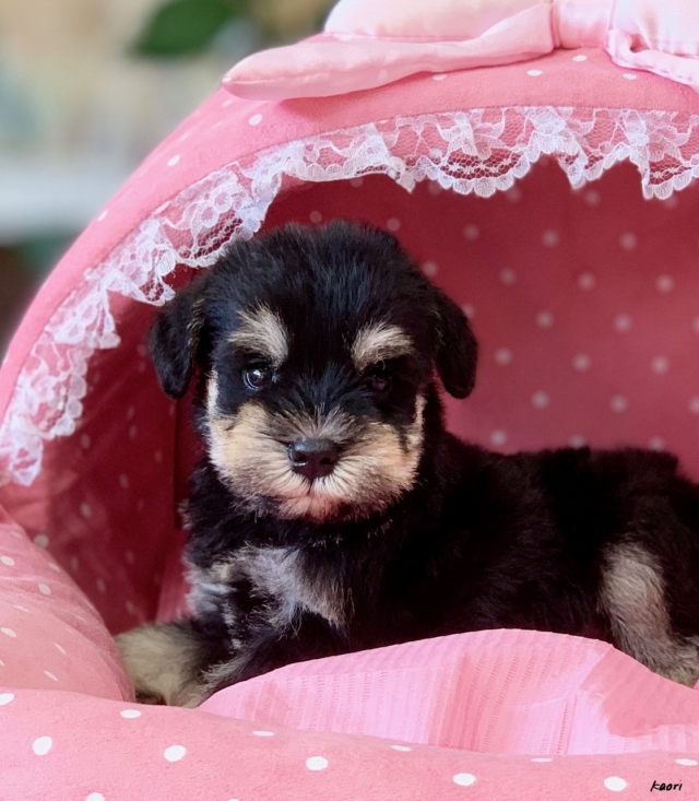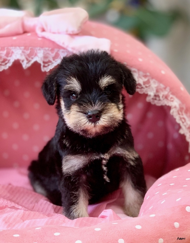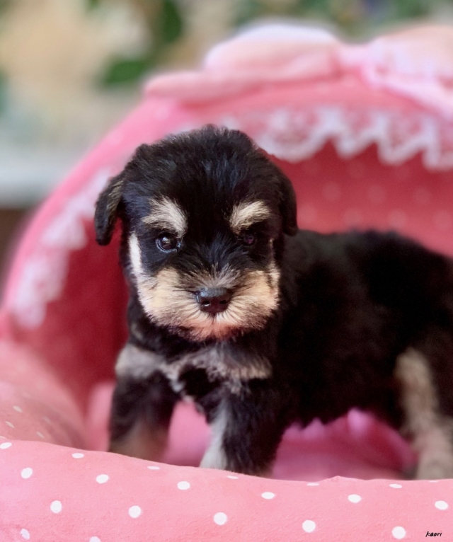 シュナウザーを主力にされているブリーダーさんだと認識しており、ボスちゃんはどうかなあと正直不安でしたがとても可愛く健康的なボスちゃんをいただきました。 掲載されていた写真より実物は想像以上に可愛くて即決し見学させていただいたその日に連れて帰りました。連絡をして、翌日行きますぅって勝手な申し出にも関わらず敏速かつ親切に対応して頂き大満足です。契約に対しても一つ一つ丁寧に説明してくださり、わかりやすかったです。この度は可愛いボスちゃんとのご縁をいただき、本当に有り難うございました。 (大阪府 女性)