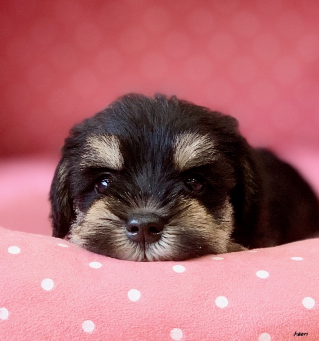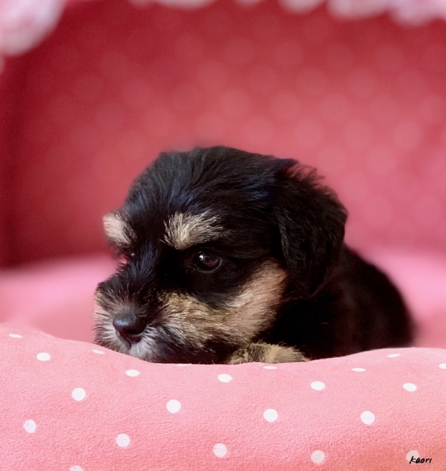 シュナウザーを主力にされているブリーダーさんだと認識しており、ボスちゃんはどうかなあと正直不安でしたがとても可愛く健康的なボスちゃんをいただきました。 掲載されていた写真より実物は想像以上に可愛くて即決し見学させていただいたその日に連れて帰りました。連絡をして、翌日行きますぅって勝手な申し出にも関わらず敏速かつ親切に対応して頂き大満足です。契約に対しても一つ一つ丁寧に説明してくださり、わかりやすかったです。この度は可愛いボスちゃんとのご縁をいただき、本当に有り難うございました。 (大阪府 女性)