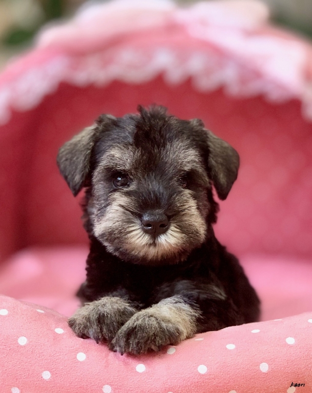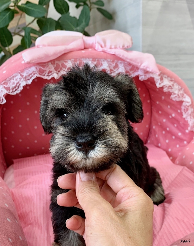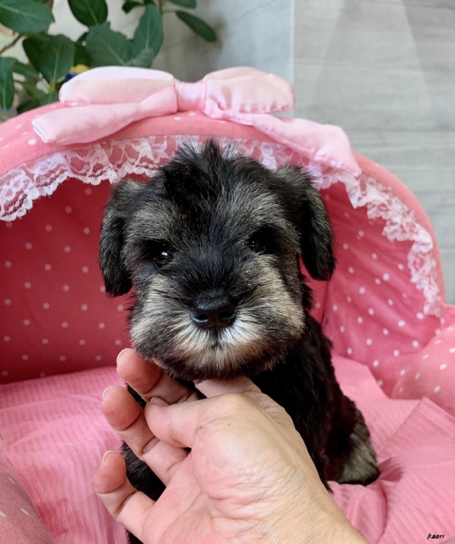 シュナウザーを主力にされているブリーダーさんだと認識しており、ボスちゃんはどうかなあと正直不安でしたがとても可愛く健康的なボスちゃんをいただきました。 掲載されていた写真より実物は想像以上に可愛くて即決し見学させていただいたその日に連れて帰りました。連絡をして、翌日行きますぅって勝手な申し出にも関わらず敏速かつ親切に対応して頂き大満足です。契約に対しても一つ一つ丁寧に説明してくださり、わかりやすかったです。この度は可愛いボスちゃんとのご縁をいただき、本当に有り難うございました。 (大阪府 女性)
