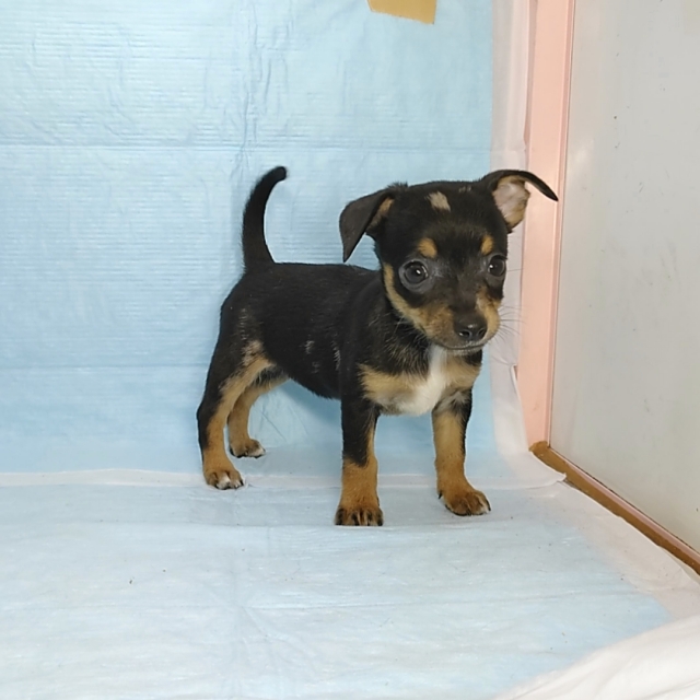 | コメント | 父親…チワワ 母親…ミニチュアピンシャー 物怖じしなく、しっぽフリフリ寄ってきます(^-^) あまり綺麗にマール柄が出ませんでした。 ※断尾していません。 ※必ず見学が必要になります。 見学の際は大阪のショップに来て頂くことになります。前もってご連絡ください。 素敵なご縁があります様に。 沢山のお問い合わせお待ちしております! |