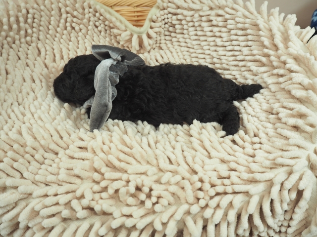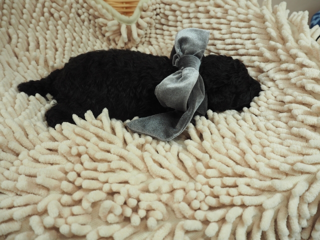 この度はとっても元気な子をありがとうございました。 見学の際は駅まで迎えにきていただき、説明もとても丁寧で安心しました。 空輸で送っていただき、ありがとうございました。 迎えてから一週間が経ち、家にも慣れて、へそ天で寝ています。 トイレトレーニングも、来た時から8割できていて、今ではほとんど失敗しなくなりました。 可愛く元気で、毎日元気に飛び跳ねています。(奈良県 女性)