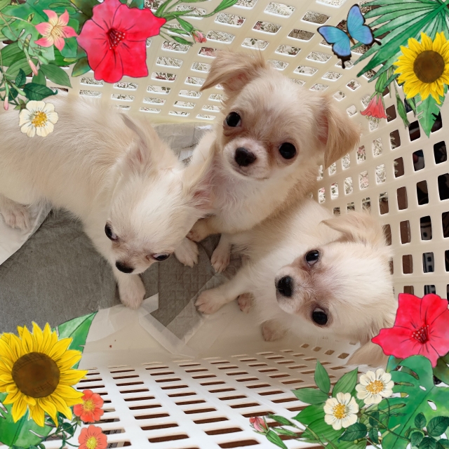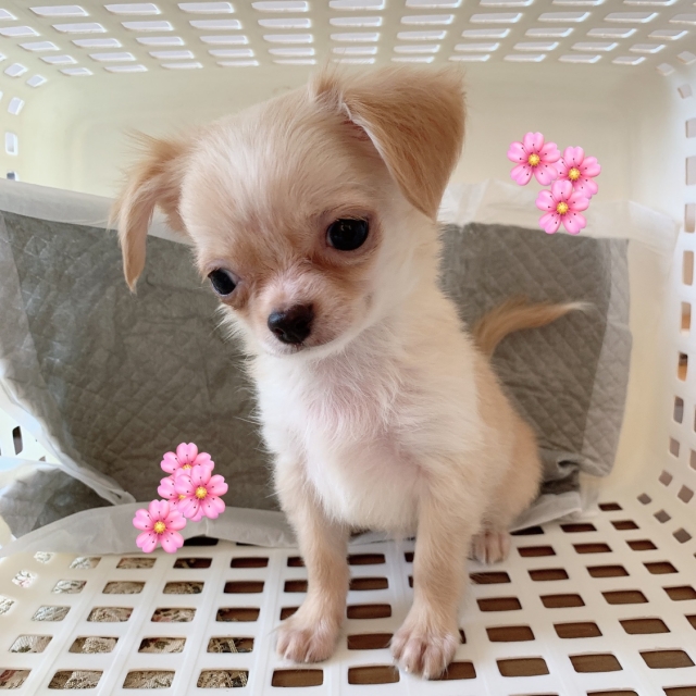 | コメント | ペットで可愛がっていただきたいため 血統書は発行いたしません。 血統書無しですが純粋なロングチワワちゃんです☆ お鼻ぺっちゃんこの可愛い4姉妹が生まれました 両親鼻ぺちゃチワワですので この子たちもキツネのようになってしまうことはありません 血統書をお付けしないのでお求めやすい価格になっております とても小さな子なので今まで募集を見合わせていましたが、食欲もしっかりあり もうカリカリが食べられますので 安心してお迎えいただけるようになりました。 明るい性格で穏やかですので 初めてチワワを飼われる方でも大丈夫です お迎えくださったオーナーさまへは飼育相談も丁寧にお応えさせていただきます。 クリームともゴールドともつかない とても綺麗な毛色です お目々くりくり 現時点で欠点はございません。 お迎えを真剣にお考えくださり ご家族皆様賛成の上、ご見学お申し込みください 可愛いチワワちゃんに良いご縁を願っております。 〜新型コロナ感染防止対策〜 ・ご見学は少人数(2人以内)で ・ペットショップ等からの梯子禁止 ・手指消毒 ・短時間(30分以内)のご見学 ・マスクのご着用 上記ご協力よろしくお願いいたします。 |