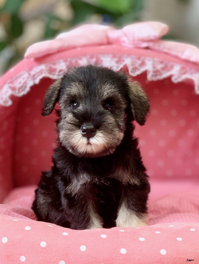 シュナウザーを主力にされているブリーダーさんだと認識しており、ボスちゃんはどうかなあと正直不安でしたがとても可愛く健康的なボスちゃんをいただきました。 掲載されていた写真より実物は想像以上に可愛くて即決し見学させていただいたその日に連れて帰りました。連絡をして、翌日行きますぅって勝手な申し出にも関わらず敏速かつ親切に対応して頂き大満足です。契約に対しても一つ一つ丁寧に説明してくださり、わかりやすかったです。この度は可愛いボスちゃんとのご縁をいただき、本当に有り難うございました。 (大阪府 女性)