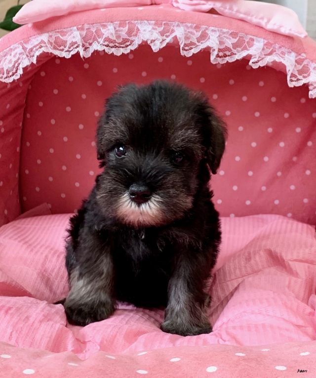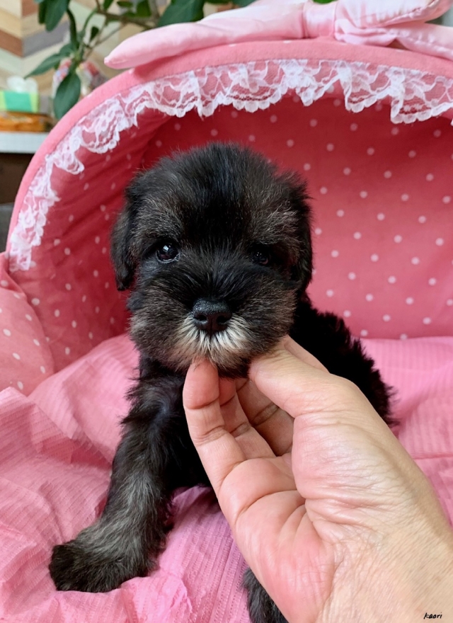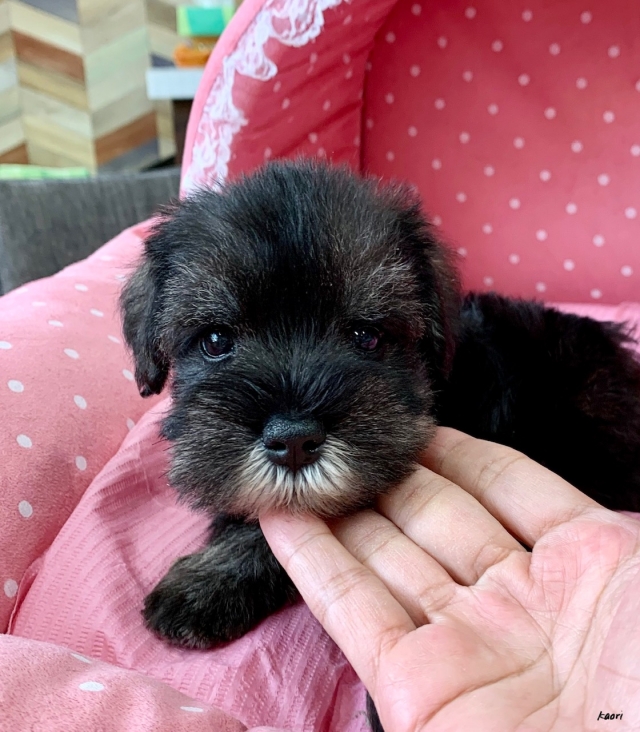 シュナウザーを主力にされているブリーダーさんだと認識しており、ボスちゃんはどうかなあと正直不安でしたがとても可愛く健康的なボスちゃんをいただきました。 掲載されていた写真より実物は想像以上に可愛くて即決し見学させていただいたその日に連れて帰りました。連絡をして、翌日行きますぅって勝手な申し出にも関わらず敏速かつ親切に対応して頂き大満足です。契約に対しても一つ一つ丁寧に説明してくださり、わかりやすかったです。この度は可愛いボスちゃんとのご縁をいただき、本当に有り難うございました。 (大阪府 女性)