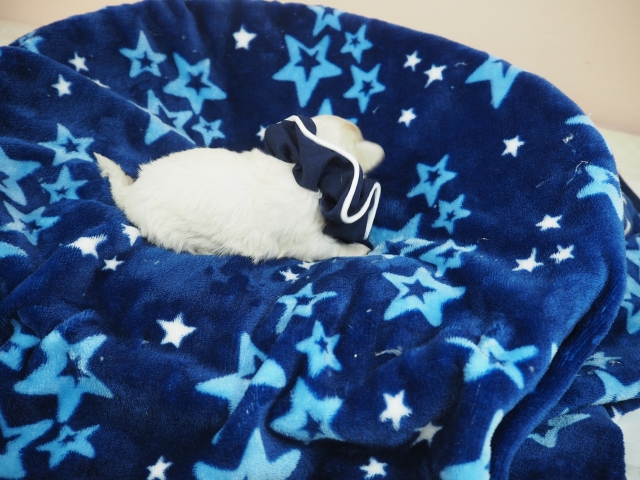 この度はとっても元気な子をありがとうございました。 見学の際は駅まで迎えにきていただき、説明もとても丁寧で安心しました。 空輸で送っていただき、ありがとうございました。 迎えてから一週間が経ち、家にも慣れて、へそ天で寝ています。 トイレトレーニングも、来た時から8割できていて、今ではほとんど失敗しなくなりました。 可愛く元気で、毎日元気に飛び跳ねています。(奈良県 女性)