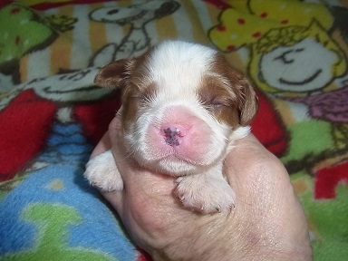 橋本さんはキャバリアのプロでとても冗談大好きで初めての電話の際から毎回楽しくお話させていただきました。待望のお迎えの際も先輩キャバリアちゃんたちが賑やかに迎えてくれて(キャバリア祭り笑)、子犬のパパママにも会わせていただき感激しました。ちなみに橋本さんちのキャバリアちゃんたちはみんな美男美女でかわいい子ばっかりです。橋本さんの優しくキャバ愛溢れるお人柄も決め手にもなりました。子犬は夜鳴きもせず当日から元気いっぱいで毎日おてんば発揮してます笑、これからもずっと大切に育てていきます!また子犬が落ち着きましたら橋本さんとキャバちゃんたちに会いに素敵な尾道に里帰りさせてもらいたいなぁと企んでおります笑、本当にありがとうございました! (京都府 女性)