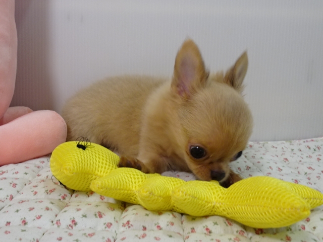 | コメント | ※※新型コロナウイルス感染防止について※※ ・消毒、除菌は徹底しておりますが ご見学の際は少人数(1~2名)で、また短時間(30分程度)でお願いいたします。 (購入の有無のお返事は後日でもかまいません) ・必ずマスク着用にてお越し願います。 ・現在駅までの送迎は控えさせていただいております。 申し訳ありませんが電車でお越しの際は駅からタクシーをご利用ください。 ・当日体調が悪い場合は無理せず日時の変更をお願いいたします。 綺麗な毛色でクリクリおめめの可愛い子です。 頭部の張りもあるでこっぱちくんです。 今のところ性格はのんびりマイペースな子です。 食欲もしっかりあり、離乳食も順調に進んでいます。 毎日ママや兄妹とじゃれ合いながら楽しく社会勉強しています。 普通サイズ予想。 ワクチン3回済みました。(別途ワクチン代3回分かかります) 健康チェックも問題ありませんでした。 両親共PRA遺伝子検査クリアです。 お写真ではこの子の可愛さが伝わり切れません。 とても可愛い子です♪是非ご見学にお越しください。 《お願い事》 まずは、子犬を飼う事をご家族で十分お話合いをされ、子犬をお迎えできる環境が整ってからのお問い合わせをお願いいたします。 お問い合わせ時に希望の子犬が決まっておらず、生まれている子犬全部を見たい等のご希望には添えかねます。 こまめな写真更新を心がけております。 個別にお写真や動画のご希望には対応しておりません。 当方、一般家庭で特別見学用の部屋などございません。 見学の際は出産前後の母犬が興奮してしまうため、玄関での見学をお願いしております。 ※子犬は日々成長し、変化します。 ご予約からお引渡しまでのお預かりの間に生じた欠点・変化についてのクレームは一切お受けできません。 |