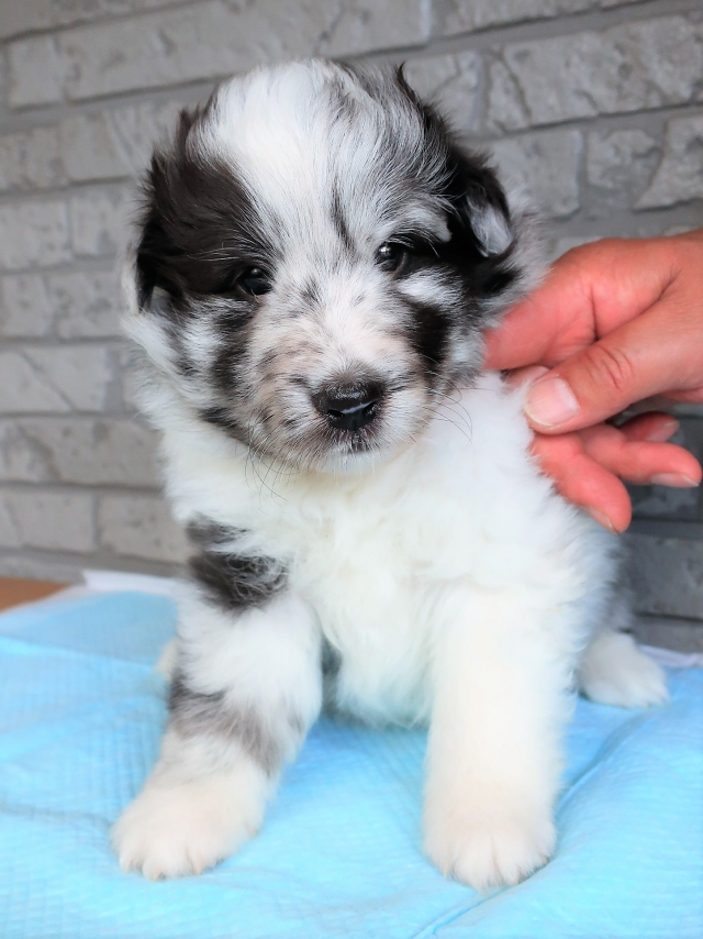 ネットブリーダーズを拝見し、バイブルーで青い目の子犬「銀くん」に一目ぼれしました。また、平山ブリーダー様の口コミがとても良かったこともあり、不安なく連絡をさせていただきました。お問い合わせ後すぐに丁寧な返信をいただき、見学の日程もスムーズに決まりました。 実際に伺うと、かわいいたくさんのシェルティちゃん達に迎えられ、たくさんの質問にも丁寧に答えてくださり、大変安心しました。お迎えした銀くんは、最初の1日はおとなしく心配になるほどでしたが、2日目からは甘えたり鳴いたりと元気を取り戻し、とても可愛い姿を見せてくれています。 平山ブリーダー様の元で大切に育てられてきたことがよく分かり、銀くんをお迎えできて心から良かったと思っています。 素敵なご縁をありがとうございました。(福島県 女性)