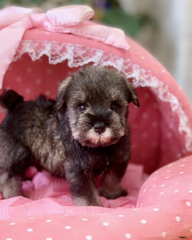 シュナウザーを主力にされているブリーダーさんだと認識しており、ボスちゃんはどうかなあと正直不安でしたがとても可愛く健康的なボスちゃんをいただきました。 掲載されていた写真より実物は想像以上に可愛くて即決し見学させていただいたその日に連れて帰りました。連絡をして、翌日行きますぅって勝手な申し出にも関わらず敏速かつ親切に対応して頂き大満足です。契約に対しても一つ一つ丁寧に説明してくださり、わかりやすかったです。この度は可愛いボスちゃんとのご縁をいただき、本当に有り難うございました。 (大阪府 女性)