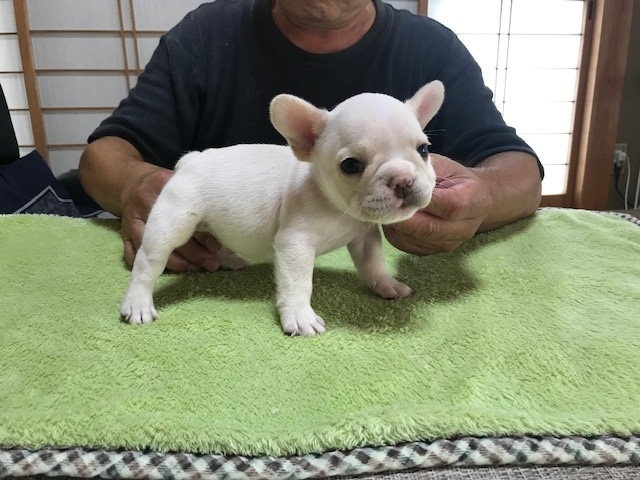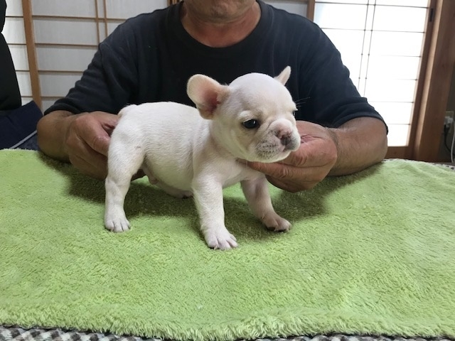 掲載されていた仔犬が可愛らしく見学を希望、西村さんよりすぐご連絡頂きました。見学に行った時には仔犬だけじゃぁ無く親犬や他の仔犬など沢山のフレンチにふれ合い、とても気さくな西村さんとお話ししていて幸せなひと時でした。帰りは近くの高速の入り口まで案内して頂きました。我が家に迎え入れて数日経ちますが元気で愛くるしくってたまらないです。(大阪府 女性)