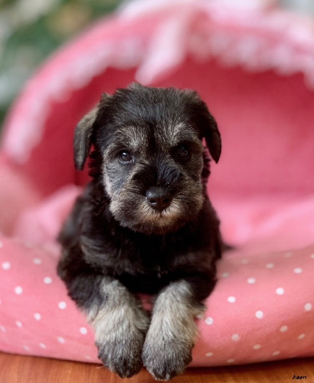 シュナウザーを主力にされているブリーダーさんだと認識しており、ボスちゃんはどうかなあと正直不安でしたがとても可愛く健康的なボスちゃんをいただきました。 掲載されていた写真より実物は想像以上に可愛くて即決し見学させていただいたその日に連れて帰りました。連絡をして、翌日行きますぅって勝手な申し出にも関わらず敏速かつ親切に対応して頂き大満足です。契約に対しても一つ一つ丁寧に説明してくださり、わかりやすかったです。この度は可愛いボスちゃんとのご縁をいただき、本当に有り難うございました。 (大阪府 女性)