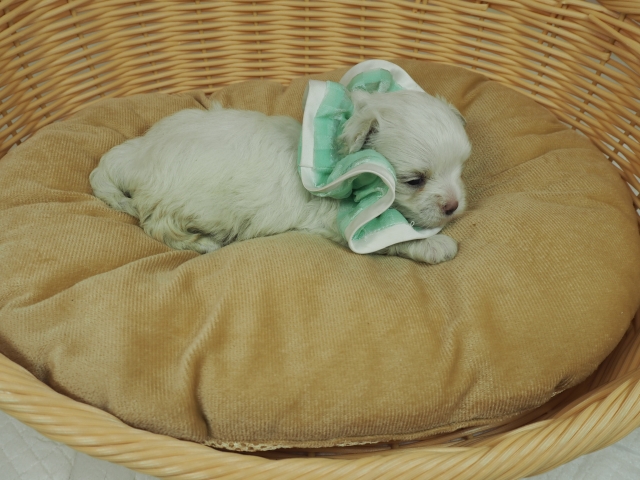 | コメント | お父さんはアラン君、お母さんはコハクちゃんから生まれたキュートな女の子です。(緑リボン) 健康状態は、問題有りません。 すくすく育っています。 |