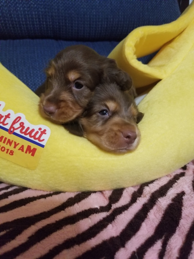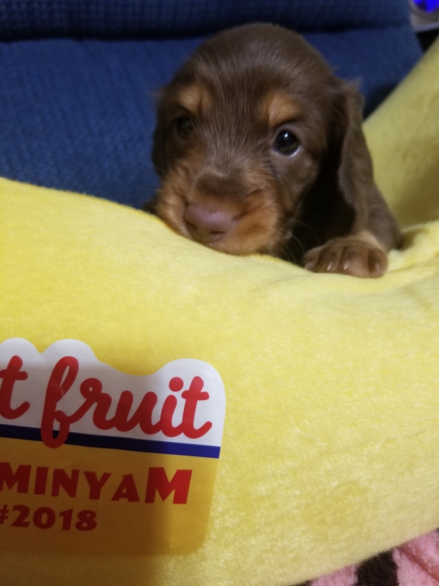 偶然、2月に亡くなった愛犬と同じ誕生日で、まったく同じ犬種のダックスちゃんに反応し、問い合わせをしました。遠いけど、行って良かった。可愛くて可愛くて、とてもイイコで扱いやすくて元気なワンコちゃんなので育てやすくて、良かった。鈴木さんは、気配りが行き届いて、至れり尽くせりなブリーダーさんでした。またワンコをむかえるときは、鈴木さんからにしたいと思います。(埼玉県 女性)