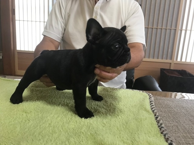 掲載されていた仔犬が可愛らしく見学を希望、西村さんよりすぐご連絡頂きました。見学に行った時には仔犬だけじゃぁ無く親犬や他の仔犬など沢山のフレンチにふれ合い、とても気さくな西村さんとお話ししていて幸せなひと時でした。帰りは近くの高速の入り口まで案内して頂きました。我が家に迎え入れて数日経ちますが元気で愛くるしくってたまらないです。(大阪府 女性)