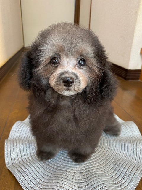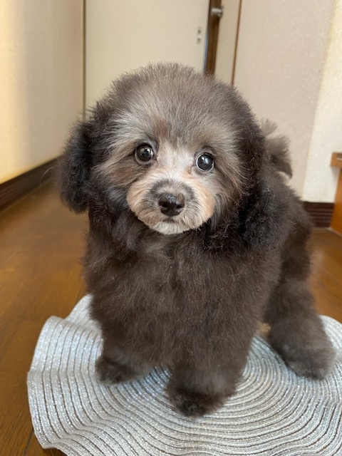 念願のトイプードルが我が家にきました。 初めてブリーダーさんから購入でしたので不安もありましたが、丁寧に対応して下さり、大変心強く、信頼できました。 我が家に来た時から人懐っこく愛嬌たっぷり。 家の中の雰囲気が以前よりとっても温かくなり、中学生の二人の子どもとも、会話が増えました。 素敵なご縁を頂きありがとうございました。 (兵庫県 女性)