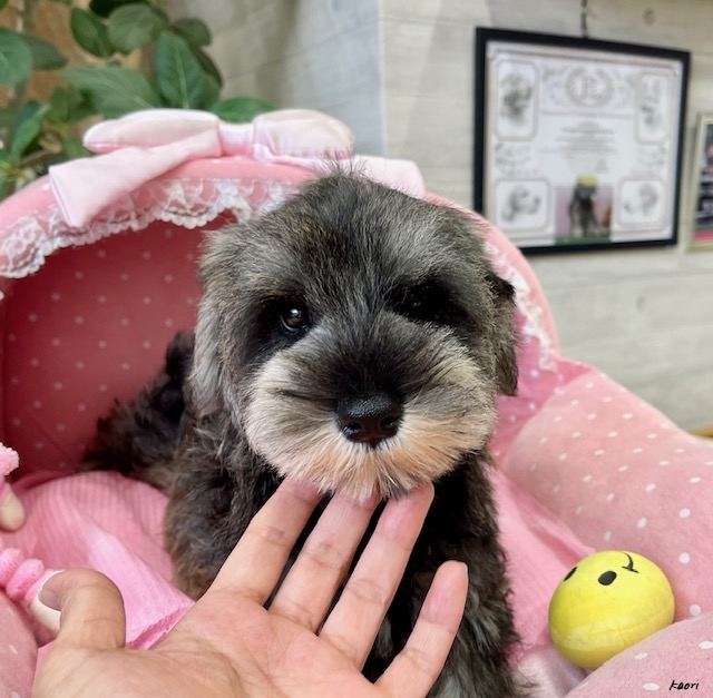 シュナウザーを主力にされているブリーダーさんだと認識しており、ボスちゃんはどうかなあと正直不安でしたがとても可愛く健康的なボスちゃんをいただきました。 掲載されていた写真より実物は想像以上に可愛くて即決し見学させていただいたその日に連れて帰りました。連絡をして、翌日行きますぅって勝手な申し出にも関わらず敏速かつ親切に対応して頂き大満足です。契約に対しても一つ一つ丁寧に説明してくださり、わかりやすかったです。この度は可愛いボスちゃんとのご縁をいただき、本当に有り難うございました。 (大阪府 女性)