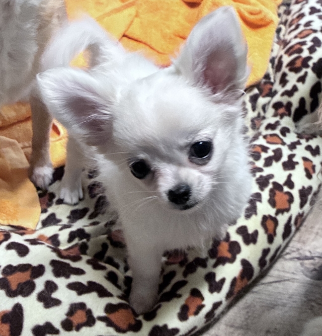 ネットだけでは不安もあり、見学をさせて頂きとてもかわいいちわわちゃんと出逢えました。その他のちわわちゃん達も見せて頂き、皆人懐っこく、清潔な環境で愛情たっぷりに育てられたのだと実感しました。家にきた仔も甘え上手で、人懐っこいとてもいい仔。 トイレも早くトレーニングされてたみたいですぐにほぼ完成。 ちわわちゃん達の健康にもとても気を配ってられ、フォローもしっかりして頂けるので信頼できるブリーダーさんです。 タイトルを取ったちわわも見せて頂きました。 犬質もとても良く思ったので見させて頂いたその日に連れて帰りました。本当にかわいい仔に出逢えてよかったです。有難うございました。 (京都府 女性)