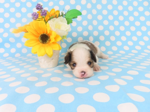 パピヨン ホワイト&レッドセーブル ♀(女の子) 千葉県【 ブリーダーズ 】