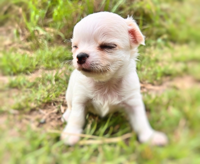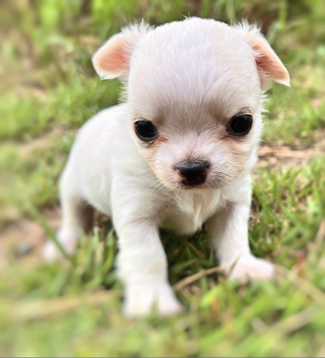 コメント | 8月16日生まれ (お引き渡しは10月12日以降になります) 男の子 ロングコートチワワ 優しいクリームカラー 9/10現在 400g 予想体重2.0〜2.3kg まんまるおめめがとてもキュートなベビーフェイスくんです。 ふわふわの毛並みとおっとりした性格で、抱っこするとすぐに安心してくれる甘えん坊タイプです。 離乳食も始まり、トイレトレーニングもだんだんと進んでおります。 噛み合わせはオーバーですが、元気いっぱいで健康状態も良好です。 この子だけのチャームポイントとして、さらに愛おしく感じていただけるはずです。 写真では斜視のように見えることがありますが、異常はございません。 父犬 ラフター 母犬 ジジ 今後の販売額は成長によって上下する場合がありますが、ご予約金をいただいた後に値段を変更することはございません。 また、お仕事などでお留守番が長くなるご家庭には、1日朝晩2食で大丈夫な月齢(生後3か月)になるまでお預かりしてからのお渡しも可能です。その場合はご予約金5万円をお支払いいただいた方に限ります。(生後3か月以降は有料となります) たくさんの愛情で包んでくださるご家族との素敵なご縁をお待ちしております。 また、LINEでのビデオ見学も承っております |