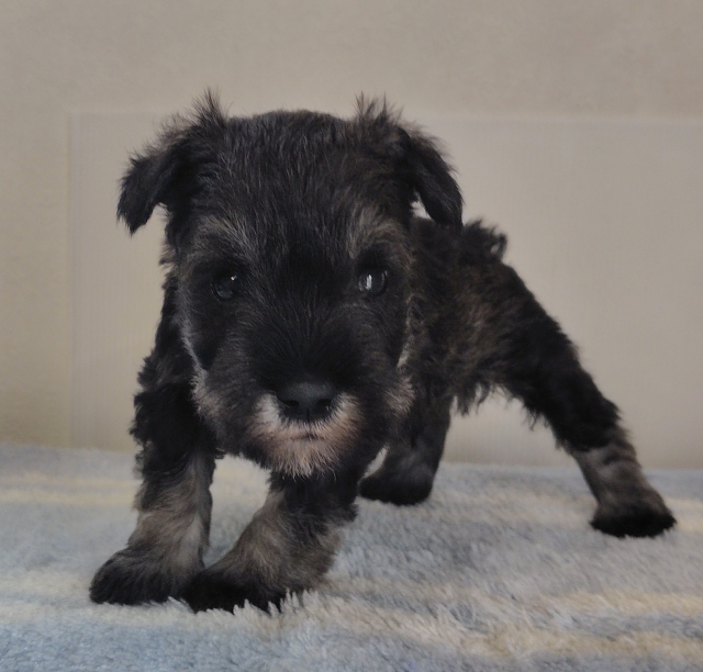 コメント | ご覧頂きありがとうございます 今回も素敵な男の子が誕生しました。 お父さんはJKCチャンピオン直仔で、メキシコチャンピオンの血を受け継いでいます。 お母さんもチャンピオンの血を引き継いでいます。 両親ともに、こだわりの血統の仔犬です。 お母さんの母乳で、体調を崩す事もなく順調に成長しています。 離乳食も開始しましたが、しっかり食べて順調に育っています。 9月20日現在の体重は、600gで標準サイズに成長しそうです。(成犬時5〜6kgの予想) バランスの良い体型で、シュナウザーらしく骨量も豊富です。 お母さんが教えてくれたのか、トイレも外さずお利口さん、ヨチヨチ歩き出し、活発になってきました。 両親共に自家繁殖ですので、お父さんお母さんも一緒に見学頂く事も可能です。 お譲り可能になるのは、10月中旬以降になりますが、健康状態も良好ですので、見学頂く事は可能です。 当犬舎では、定期的に親睦会を開催し、オーナー様方との親睦を深め、飼育相談やお手入れ相談も実施しています。 |