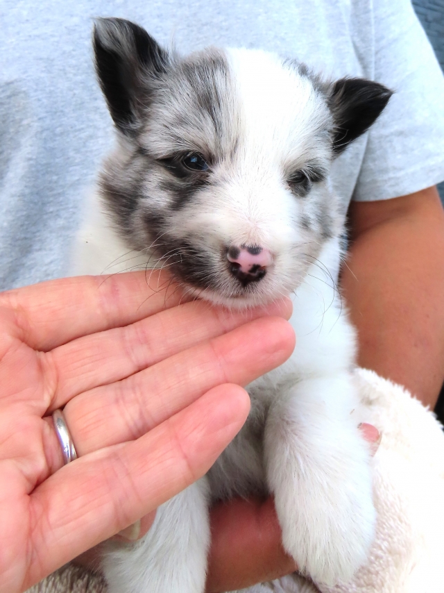 コメント | 一華ママの次男 綺麗系イケメンくん! お父さん アメリカ カナダ 日本チャンピオンの息子 お母さん JCCグランドチャンピオンの娘 今のところ歯の噛み合わせ、ヘルニア等の欠点なし。 右目が黒、左目がブルーです。 ※お鼻のピンク色の部分は徐々に黒くなっていきます。 見学は子犬を迎えることにご家族全員の同意を得てから お申込みくださいますようお願いいたします。 お問い合わせお待ちしております。 |