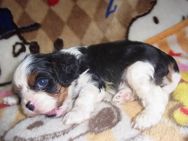 橋本さんはキャバリアのプロでとても冗談大好きで初めての電話の際から毎回楽しくお話させていただきました。待望のお迎えの際も先輩キャバリアちゃんたちが賑やかに迎えてくれて(キャバリア祭り笑)、子犬のパパママにも会わせていただき感激しました。ちなみに橋本さんちのキャバリアちゃんたちはみんな美男美女でかわいい子ばっかりです。橋本さんの優しくキャバ愛溢れるお人柄も決め手にもなりました。子犬は夜鳴きもせず当日から元気いっぱいで毎日おてんば発揮してます笑、これからもずっと大切に育てていきます!また子犬が落ち着きましたら橋本さんとキャバちゃんたちに会いに素敵な尾道に里帰りさせてもらいたいなぁと企んでおります笑、本当にありがとうございました! (京都府 女性)