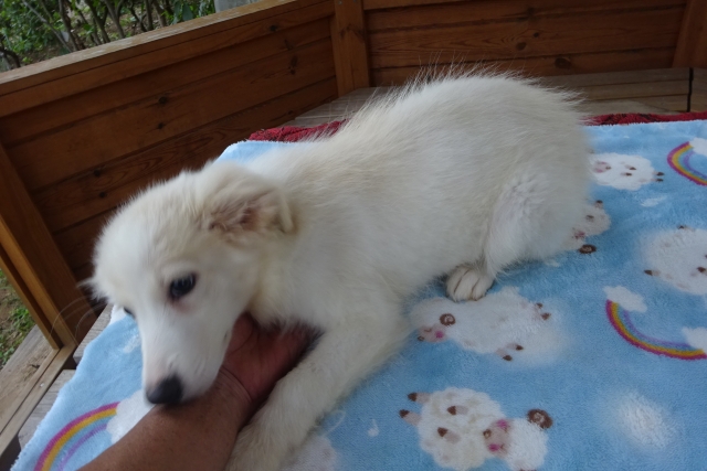 カーナビに住所登録した場所に到着した時は、想像していた雰囲気と違って、エッ⁈ ここは農家さん? って思いましたが、山崎ブリーダーにお会いして、いろいろお話しさせて頂き、そのお人柄と、実際の仔犬ちゃんに接した時、絶対にこの仔が良い!と思いました。山崎さんから 2頭目を購入希望の北海道のオーナーさんとも偶然に出会えて、訓練について教えて頂き、とても勉強になりました。何か有れば、いつでも電話して下さい。と言って頂き、とても心強く、安心出来ました。これからの、この仔との生活が本当に楽しみです!山崎さんと出会えて良かったです!ありがとうございました!(沖縄県 女性)