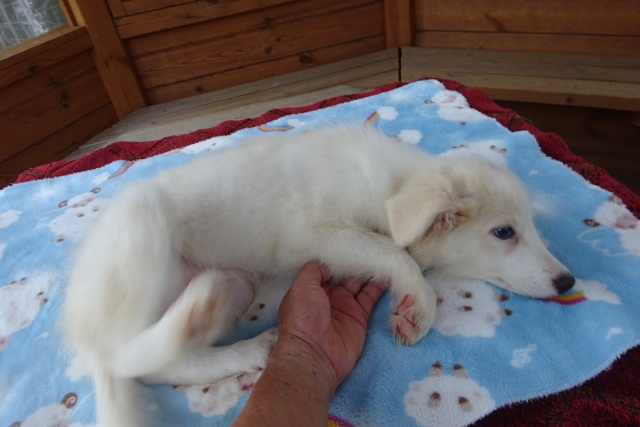 生体保証 | 引き渡し後、10日以内に死亡もしくは日常生活に支障をきたすような先天性の異常が見つかった場合は、代犬提供いたします。 その場合、1週間以内に電話でご連絡の上2か所の獣医師の診断書が 必要です。 他の原因での死亡や医療費その他の経費は保証対象外となります。 |