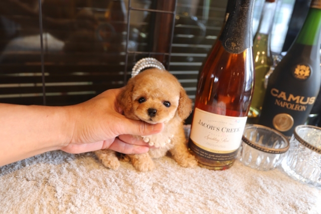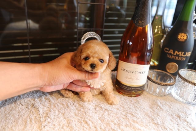 コメント | ィーカッププードル父犬:1.7㎏ ティーカッププードル母犬:1.8kg 撮影日時10/12 14時 現在体重541グラム ◆◆◆ ご挨拶 ◆◆◆ 数あるページの中から当店のページをご覧いただき、本当にありがとうございます。 オーナーブリーダーの戸田と申します。 初めてのご訪問で、不安を感じられることもあるかもしれません。 どうぞご遠慮なく、ご相談くださいね。(*ノωノ) お迎えまで、そしてその後も、メッセージのやり取りやアフターサポートなど、全て私が責任を持ってサポートさせていただきます。 ◆◆◆ 今回ご紹介するティーカッププードルの将来サイズ ◆◆◆ 誕生日:2025年8月18日(女の子)金色系アプリコット 将来サイズ:父犬1.7kg、母犬2.0kgのため、約2.0㎏未満と予想いたします。 毛色アプリコット 可愛すぎるぬいぐるみフォルムのショートボディ(胴が短い)に足の短いドワーフタイプ の姿に小顔で吸い込まれそうな瞳が大きく丸く、マズル(鼻先)が短いテディイベアタイプ のかわいすぎる子でございます♡ 毛量も細かくとても多く色素も真っ黒♡ 金色のきれいな上質な毛並みはデニム生地の服装にぴったりです。 小さいながら骨格もしっかりしており線の細いタイプではありません。 ティーカップをお探しの方のはぜひ1度見比べていただければと思います。 価格は2頭分の金額にはなってしまいますがそれだけのかわいさがあります。 これから末永く一緒におられるパートナーですのでご検討ください。 とても可愛い両親犬で、見学の際にはぜひ実際にご覧いただき、ご家族に迎え入れるイメージを膨らませていただければと思います。 ◆◆◆ ティーカッププードルの特徴 ◆◆◆ お出かけが非常に楽に一緒にお出かけ出来ます。 その姿から2度見されることは間違いないでしょう 一緒に素敵な思い出をお作りくださいませ。 母犬からの母乳をお迎えの日までしっかり与えており、その後の免疫力や毛並みの良さ、そして健やかな成長にもつながると考えています。 ◆◆◆ 父犬・母犬の遺伝性疾患について ◆◆◆ お父さん犬とお母さん犬は、以下の遺伝性疾患についてノーマル(正常)であることが確認されています: フォンウィルブランド病(VWDタイプ1) 進行性網膜委縮症(PRA: PRCD) 変性性脊髄症(DM) また、**膝蓋骨脱臼(パテラ)**もトイプードルには多いとされていますが、当店では年2回の健康診断を行い、問題がない子犬だけを親犬にしています。万が一、後天的に問題が生じた場合も、保険や提携病院の紹介など、万全のサポートをいたしますのでご安心ください。 ◆◆◆ よくあるご質問 ◆◆◆ Q1. こんな悩みでも相談してもいいですか? → もちろんです!どんな小さな疑問や心配事でも、どうぞお気軽にお話しください。 Q2. 初めての犬舎訪問が心配です。 → お迎えを前提にしなくても全然大丈夫です!お気軽に、遊びに来る気持ちでお越しくださいね。ただし、他のお客様対応やトリミングがあるため、見学のご予約は前日までお願いいたします。 ◆◆◆ トイレのしつけ・留守番・夜鳴き・要求吠えについて ◆◆◆ 子犬が新しいおうちで安心して過ごせるよう、こちらで社会化期にしっかりと慣れさせています。また、母犬と少しずつ離れる時間をつくり、ケージ内でのトイレトレーニングも進めています。お迎え後も、同じような環境を整えていただければ、これまで通り快適に過ごせるようお手伝いさせていただきます。 ◆◆◆ 食事について ◆◆◆ お迎えの際には、食事の時間や作り方など、丁寧にご説明いたします。 お一人暮らしの方や、共働きでお忙しい方、不規則な生活リズムをお持ちの方も事前にご相談いただければ、そのリズムに合わせたアドバイスをさせていただきますので、ご安心ください。お迎え後も、食事や健康面についてのサポートはずっと続けさせていただきます。 ◆◆◆ お支払い方法と予約金について ◆◆◆ 予約金:30,000円 支払い方法:現金、銀行振込(手数料無料)、カード、ペットローン(事務手数料3.75%) ◆◆◆ 空輸や陸送について ◆◆◆ 当店では対面販売が義務付けられておりますので、実際にお越しいただき、子犬がどのような環境で育ったかを見ていただけますと幸いです。遠方の方も、飛行機でのお迎えが可能ですので、詳細はお気軽にお問い合わせください。 ◆◆◆ アフターサポートについて ◆◆◆ お迎え後も、わからないことや不安なことがあれば、いつでもお気軽にご連絡ください。電話やメールでのサポートは、生涯無料です。また、パピートリミングやしつけのご相談も、生涯無料で対応させていただきます。どんな些細なことでも、どうぞ遠慮なくご相談くださいね |