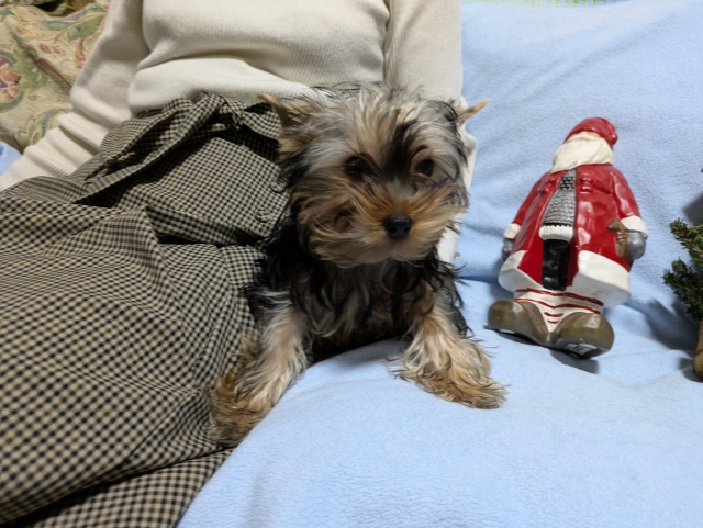 初めての飼育で不安が大きく 今までずっと決断できずにいましたが矢田ブリーダーさんのヨーキーに対する愛情が深く驚きました ママ、祖母、曾祖母まで会わせてもらいました どの子も可愛く、お利口で 「この子なら大丈夫だ」と連れて帰る決心がつきました 連れて帰る時は段ボールの箱かと思っていたら新品のクレートを用意して下さっており嬉しかったです その他 「寂しくないように」と使っていたベット、ミニ毛布、食べているフードやトイレマットシーツ、まだ寒い時もあるかもとホットウォーマーまで 沢山の物を持たせてくれました 夜泣きが心配でしたが いつものベットで安心できた様で 朝まで寝てくれました ケージ内ではトイレマットに大、小しっかりできてびっくり ケージから出すと遊びに夢中なのかリビングで何回か失敗してしまいましたが、これから頑張って躾していきます 大切に育てていきます。 (神奈川県 男性)