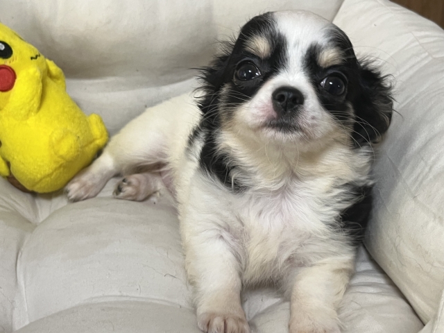 | コメント | 明るい性格の両親から生まれた優しい女の子です。 標準サイズですので、チワワ初心者の方、小さな子供さんのお相手に 最適だと思います。ワクチン接種済み、マイクロチップ装着も終了していつでもお迎え可能です。 お近くの方は是非見学にいらして下さい。遠方の方はお届け可能ですので遠慮なくお問い合わせください。 優しいご家族様とのご縁をお待ちしております。 |