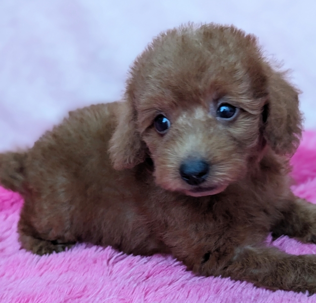 | コメント | 両親 父・トイプードル 母・ヨークシャテリア×トイプードル 説明文も読んで頂けると嬉しいです 特徴 優しいお顔の男の子です 毛質は柔らかく巻も少しですが有りふわふわしていてプードル寄りです ころっとした可愛らしい体型です まぶたの大きさが左右ほんの少し違いますのでぱっと見はほとんど分かりませんが良く見た時にほんの少し左のお目々が小さく見える時が有ります 視力には全く問題は有りません 健康診断は問題有りませんでした 生活環境 活発で明るく遊ぶのが好きな子です 兄妹も居りますので他のわんことも仲良く遊べるのではと思います 喧嘩もしながら色々と勉強中です 今はお母さんと一緒に過ごして居て色々と教えてもらっています 食欲旺盛、すくすく成長中です 大人になって4kg前後位の仕上がり予想です あくまでも予想になります 健康診断、1回目のワクチン済みました ●家族の一員として生涯可愛がって下さる方を希望致します ●見てみたいだけのご見学は子犬の負担になりますのでご遠慮して頂いて居ります ●他のペットショップさんやブリーダー様へのご訪問の後のご来店はご遠慮頂けたらと思います ●ご家族様皆さんの同意が得られてからのお問い合わせをお願い致します ●ご訪問の際にはマスクの着用と手指の消毒をお願いして居りますので宜しくお願い致します ●ご予約を頂いてから10日~2週間でのお迎えをお願いして居ります |