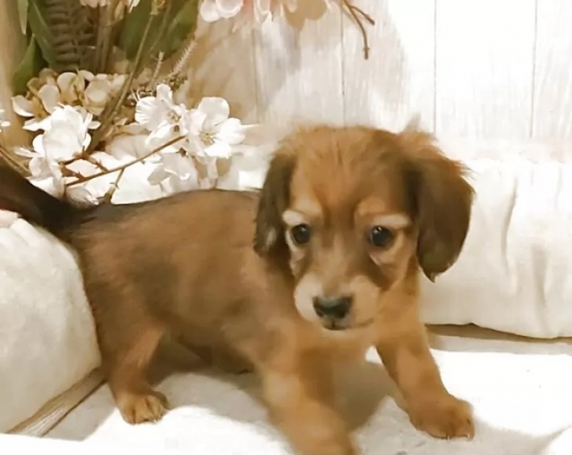 ミニチュア・ダックスフンド(ロング) シェーデッドイエロー ♂(男の子) 愛知県【 ブリーダーズ 】