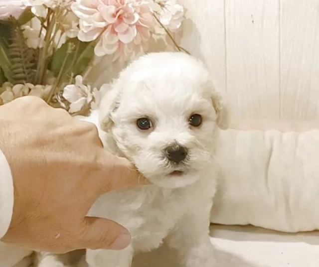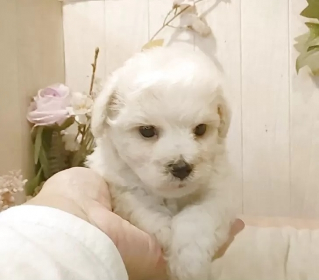 | コメント | たくさんの子犬の中から、この子をご覧いただきましてありがとうございます。 お父さん名犬◯◯直子、アメリカグランドチャンピオン、韓国インターチャンピオン血統の4.2kgのお父さん。勿論JKCチャンピオン。 母ジュミズワールド輩出の母、JKCチャンピオンの父から産まれたJKCチャンピオン直子、3.7kgの小さめの子。 良血統のSuperBabyです。 マズルが短くお目々パッチリ小さなの可愛いBABYです この子の特徴 •ビションらしいこれぞビション •足が短い •お鼻が短い •目がパッチリ大きい •毛量が多い 可愛いお顔の素晴らしい子です。是非御見学下さい 両親遺伝子検査クリアで安心してお迎え頂けます。 お顔立ちへのこだわりはもちろん、血統、健康面にも配慮しながら、わが子のように大切に育てたこだわりの子犬です。 ぜひご予約の上、かわいい子犬たちに会いに来てください。 気になることがありましたら、お気軽にご質問下さい。 各種カードご利用いただけます。(カード手数料5%別途必要となります) お問い合わせお待ちしております。 |