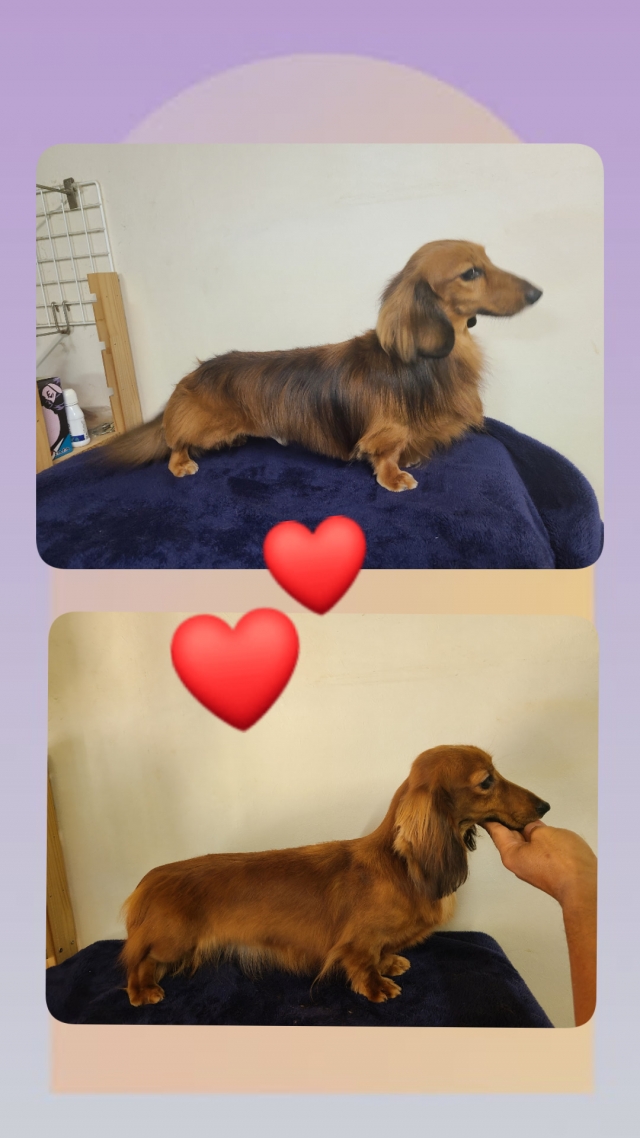 | コメント | ミニチュアロングヘアードダックスフンド男の子のご紹介になります。 両親チャンピオン犬の綺麗な毛並み 男前ですよ 性格も両親譲りの優しい子です。 歯の噛み合わせ正常 両睾丸確認済み 体型骨格矯正良し 両親PPRA クリア ご見学希望などお気軽にお問い合わせください! |