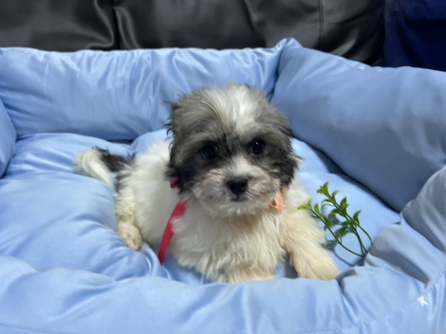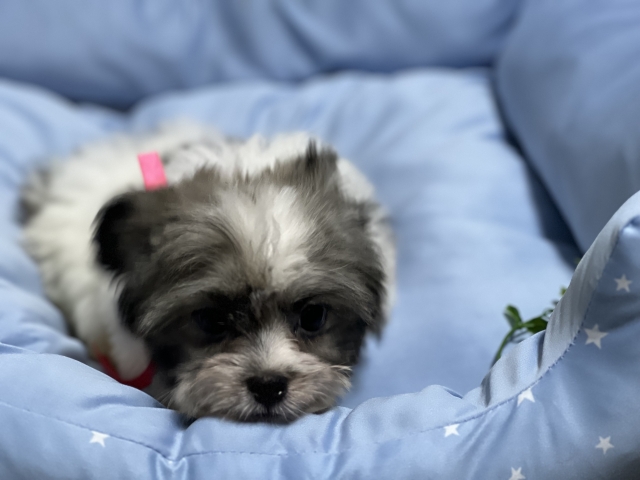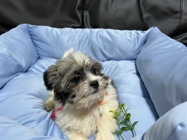| コメント | チワシーズの可愛い女の子です。 無駄吠えの無いおっとりした愛らしい子です。 フードを良く食べて健康です。 人が大好きで、直ぐに慣れます。 賢い子です。 ワクチン致しました。 |