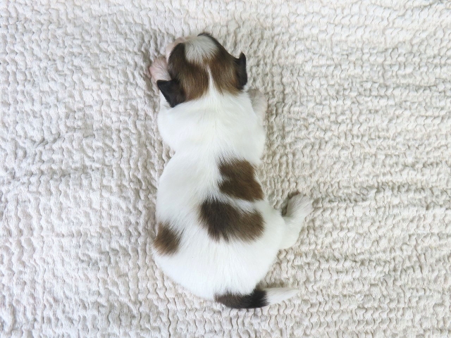 | コメント | ※体重などの情報は後日掲載いたします。 でべそがあります。 子犬と親犬はブリーダー歴30数年、40数年の経験者と動物看護士などが中心に365日、注意深く、丁寧に観察してお世話をしております。 子犬ちゃんは人間同様、個人差がありますので、子犬ちゃんのお世話の仕方、お食事あげ方はご見学時、お迎え時などに担当のスタッフより詳しくお伝えいたしますのでなんでもご遠慮なくご相談ください。 JKCの全犬種審査員資格者と単犬種パピヨン審査員資格者が在舎しておりますので、パピヨンのスタンダードを熟知しております。 当犬舎はパピヨン一筋50年を超える日本で一番歴史のあるパピヨン専門犬舎です。 犬舎号と登録は1970.10/19です。 日本中の国産のパピヨンで当犬舎の血統が入っていない犬は存在しません。 血統書発行団体JKCより下記表彰を受けております。 JKC特別繁殖奨励賞第1位受賞 犬舎 JKCパピヨン犬種表彰受賞 犬舎 ご見学は大歓迎ですのでどうぞご連絡の上、おいでください。365日年中無休です。 2013年9月1日より「動物の愛護と管理に関する法律」の改正によって、「生体販売時の現物確認・対面販売」が義務規定となりましたので、最低一度は直接犬舎までご来舎いただかなくてはなりません。従いまして今までのようにネットで写真、動画をご覧になっただけではご購入ができなくなりました。これはすべてのブリーダー・ペットショップも例外がありませんので、ご理解、ご協力のほど御願い申し上げます。 手続きに時間がかるため海外への輸出はいたしません。 スタッフの取得資格 (社)JKC 全犬種審査員2名(社)JKC 単犬種パピヨン審査員1名 (国) 動物看護師統一認定機構 愛玩動物看護師国家資格取得(社)JKC スチュアート1名(社)JKC A級ハンドラー1名 (社)JKC C級ハンドラー1名(社)日本愛玩動物協会 愛玩動物飼養管理士2級3名 動物の愛護及び管理に関する法律による動物取扱責任者2名 |