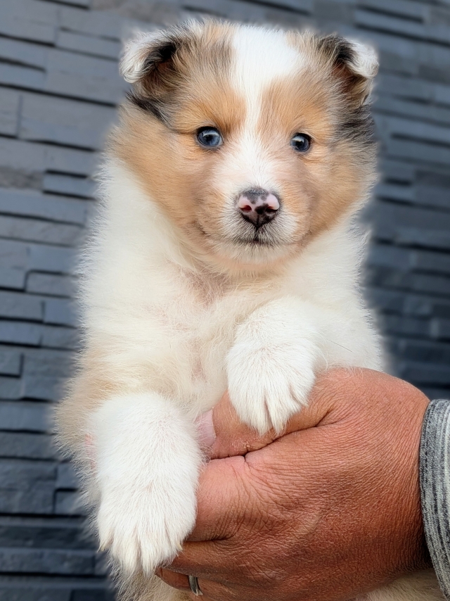 ネットブリーダーズを拝見し、バイブルーで青い目の子犬「銀くん」に一目ぼれしました。また、平山ブリーダー様の口コミがとても良かったこともあり、不安なく連絡をさせていただきました。お問い合わせ後すぐに丁寧な返信をいただき、見学の日程もスムーズに決まりました。 実際に伺うと、かわいいたくさんのシェルティちゃん達に迎えられ、たくさんの質問にも丁寧に答えてくださり、大変安心しました。お迎えした銀くんは、最初の1日はおとなしく心配になるほどでしたが、2日目からは甘えたり鳴いたりと元気を取り戻し、とても可愛い姿を見せてくれています。 平山ブリーダー様の元で大切に育てられてきたことがよく分かり、銀くんをお迎えできて心から良かったと思っています。 素敵なご縁をありがとうございました。(福島県 女性)