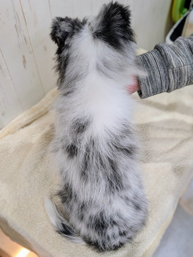 ネットブリーダーズを拝見し、バイブルーで青い目の子犬「銀くん」に一目ぼれしました。また、平山ブリーダー様の口コミがとても良かったこともあり、不安なく連絡をさせていただきました。お問い合わせ後すぐに丁寧な返信をいただき、見学の日程もスムーズに決まりました。 実際に伺うと、かわいいたくさんのシェルティちゃん達に迎えられ、たくさんの質問にも丁寧に答えてくださり、大変安心しました。お迎えした銀くんは、最初の1日はおとなしく心配になるほどでしたが、2日目からは甘えたり鳴いたりと元気を取り戻し、とても可愛い姿を見せてくれています。 平山ブリーダー様の元で大切に育てられてきたことがよく分かり、銀くんをお迎えできて心から良かったと思っています。 素敵なご縁をありがとうございました。(福島県 女性)