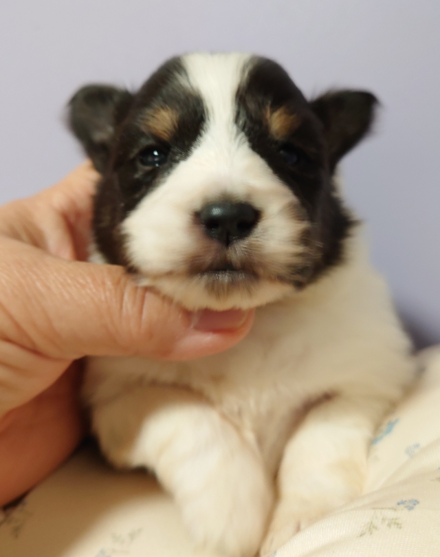 凄く色々相談しやすく、子犬について、わかりやすく教えて下さいます。 引き取り予定が近くになると、 子犬のを写真や動画を送って頂いたりと、とても安心感がありました。 引き取り当日も、子犬と共に、色々な物をプレゼント頂きました。本当に素敵な対応です。 この子がウチに来て、1週間が経ちました。名前を呼べば人見知りもせず、すぐに走って来てくれます。 とても良い子をお譲り頂き、家族一同、とても感謝しています。(山口県 女性)