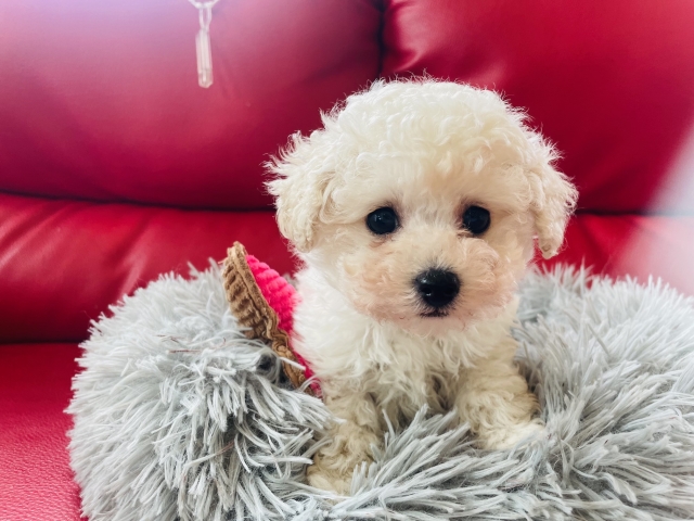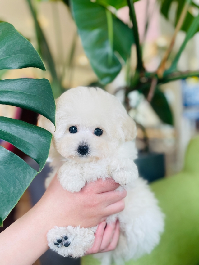 | コメント | ティーカップサイズの両親から産まれました♡ 真っ白モフモフなムチコロ君♡まん丸小さなお顔には大きなまん丸お目目が目立ちすぎ❤️わがままボーイではなくってまったりのんびりしたところも超魅力的✨ 胴の詰まりもありスクエアタイプが更にチョコチョコ動くのが可愛らしくて♡ 毛量豊富で歯状やパテラも問題無しでした 色素も濃くてリップラインやアイライン,ノーズ真っ黒です 将来が楽しみ 性格は,落ち着きがありやや控えめで甘えん坊なタイプです。 人見知りもなく犬見知りもしない環境下です。 トイレトレーニング、グルーミングマスターもしています❣️ 成犬予想体重は2kg前後予想。 見た目がかなり小さなタイプです。 両親共三項目遺伝子検査済みで,クリアですから発症しません。 優しいご家族様募集中です꒰ღ˘◡˘ற꒱❤⃛ 良いご縁に恵まれますように心よりお待ちしております 繁殖不可。 |